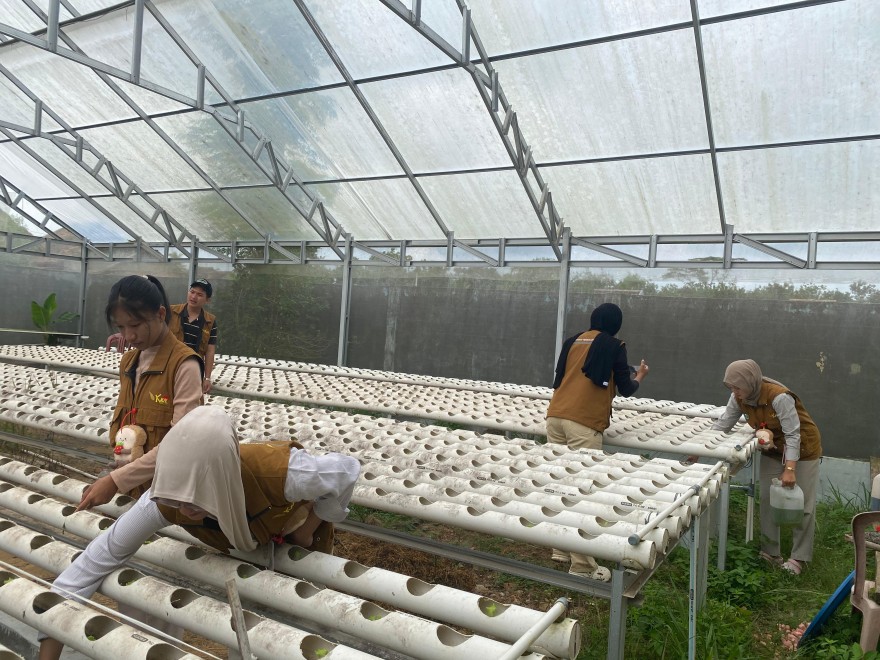 Pendampingan dilakukan melalui penyediaan booklet panduan smart farming hidroponik bagi masyarakat, kelompok Ibu PKK dan pengelola greenhouse.